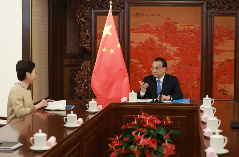 李克強表示,今年以來,林鄭月娥行政長官帶領特別行政區政府穩健施政,有效防控疫情,促進經濟恢復。中央政府對林鄭月娥行政長官和特別行政區政府的工作是充分肯定的。