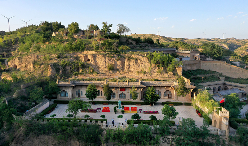 游人在陜西省榆林市米脂縣楊家溝革命舊址參觀(2021年9月10日攝,無人機(jī)照片)。新華社記者 陶明 攝