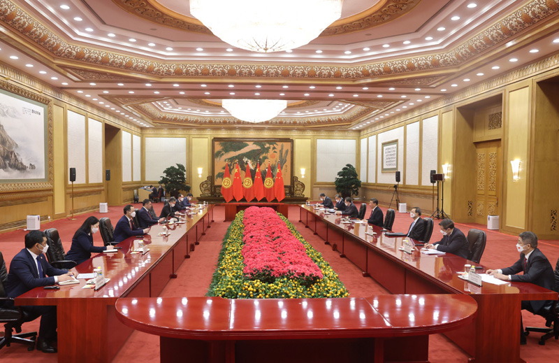 2月6日下午,國家主席習近平在北京人民大會堂會見來華出席北京2022年冬奧會開幕式的吉爾吉斯斯坦總統扎帕羅夫。新華社記者 劉衛兵 攝