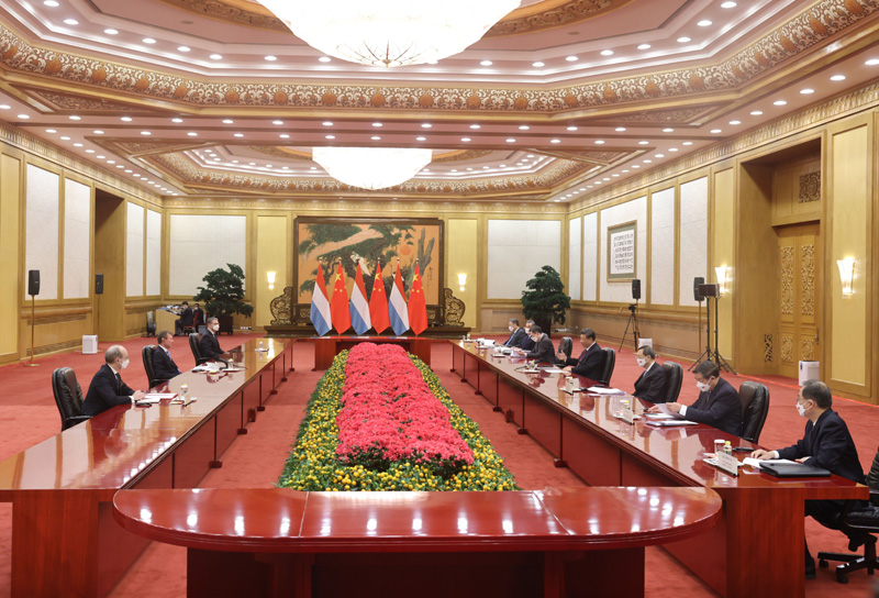 習近平指出,中方贊賞你對中方申辦籌備2008年夏奧會和2022年冬奧會提供的寶貴支持,感謝盧森堡王室對中盧友好事業的堅定支持和積極推動。盧森堡是中國的友好合作伙伴。新冠肺炎疫情發生后,中盧相互支持、攜手抗疫,給兩國友誼注入了新內涵。今年是中盧建交50周年。中方愿同盧方一道,推動中盧關系持續穩定向前發展。