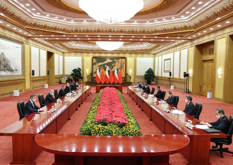 2月6日上午,國家主席習(xí)近平在北京人民大會(huì)堂會(huì)見來華出席北京2022年冬奧會(huì)開幕式的波蘭總統(tǒng)杜達(dá)。新華社記者 劉衛(wèi)兵 攝