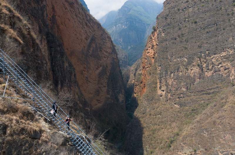 阿土列爾村的萬丈陡壁上,曾經搖搖欲墜的藤梯,已經換成了結實的鋼梯。