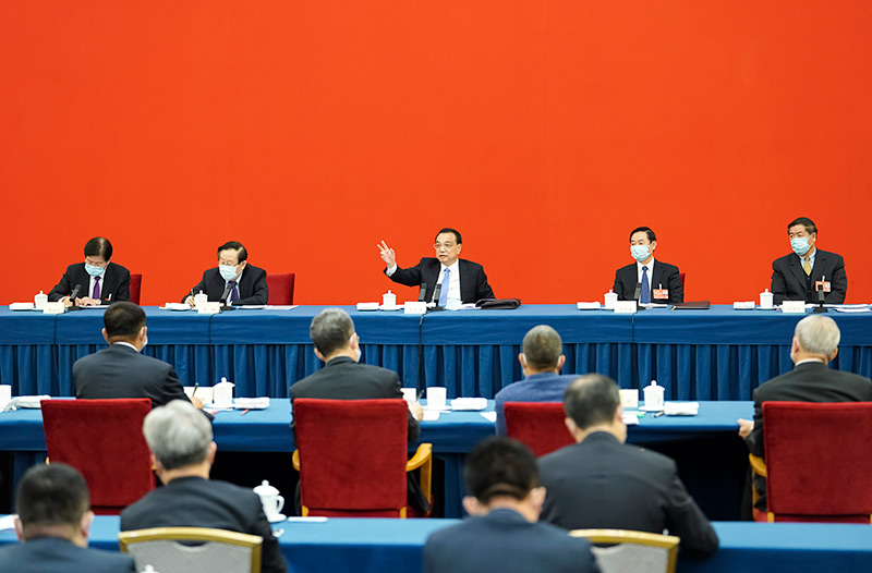 3月6日,中共中央政治局常委、國務(wù)院總理李克強看望出席全國政協(xié)十三屆五次會議的經(jīng)濟界委員并參加討論。新華社記者 殷博古 攝