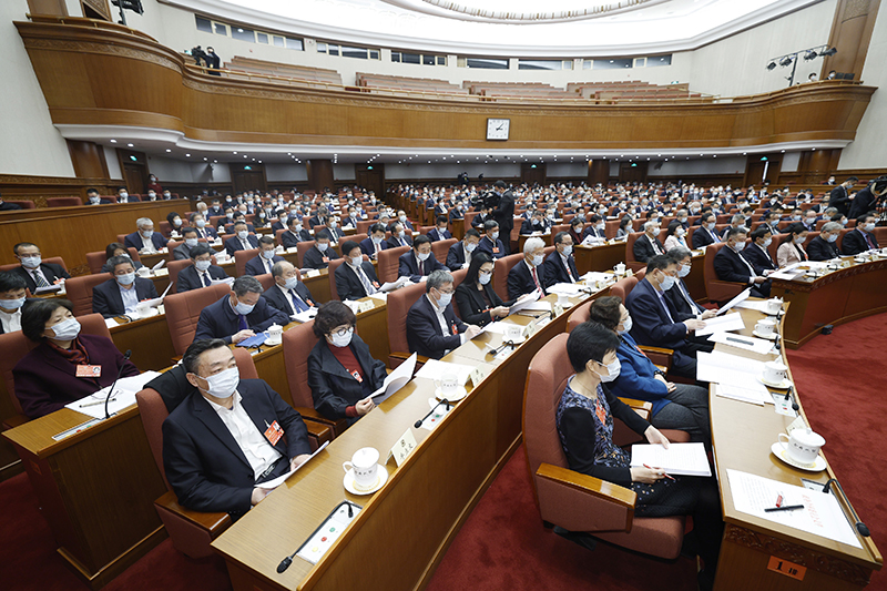 3月7日,全國政協十三屆五次會議舉行視頻會議。會議在全國政協機關設主會場,在委員駐地設分會場。這是主會場。新華社記者 劉彬 攝