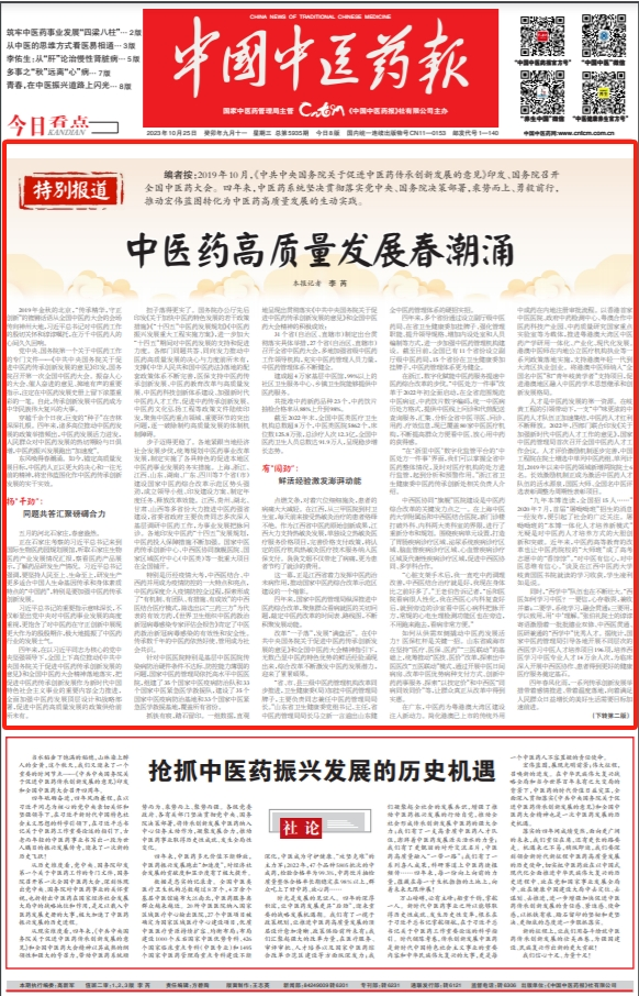 東風喚得春潮涌。如今,錨定高質量發展目標,中醫藥人正以更大的決心和一往無前的精神,將宏偉藍圖化作中醫藥傳承創新發展的實干實效。