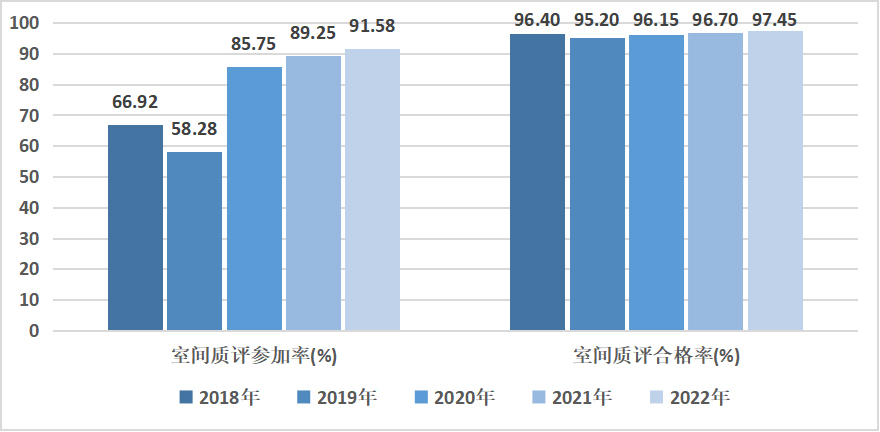圖6 2018-2022年三級公立中醫醫院室間質量評價項目參加率和合格率情況