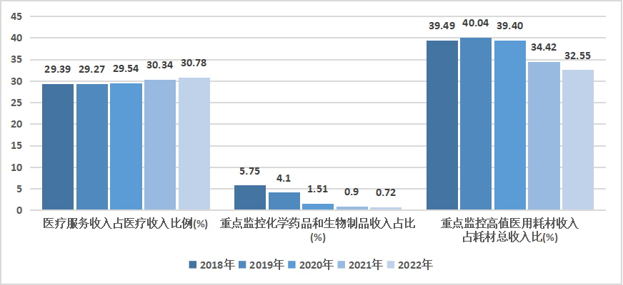 圖8 2018-2022年三級公立中醫醫院收入結構情況