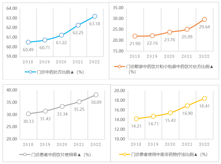 圖2 2018-2022年 三級公立中醫醫院門診特色指標變化情況