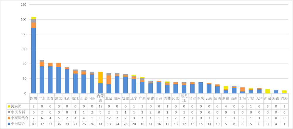 經各省級中醫藥主管部門審核確認,全國共705家三級公立中醫醫院參加2022年度績效考核。其中,中醫醫院571家,中西醫結合醫院76家,中醫專科醫院24家,少數民族醫醫院34家(見圖1)。與2021年相比,新增考核醫院48家,因合并、降級、撤銷等原因退出考核的醫院共4家。