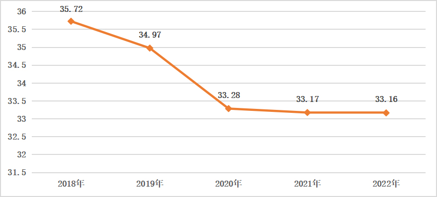圖4 2018-2022年三級公立中醫醫院抗菌藥物使用情況